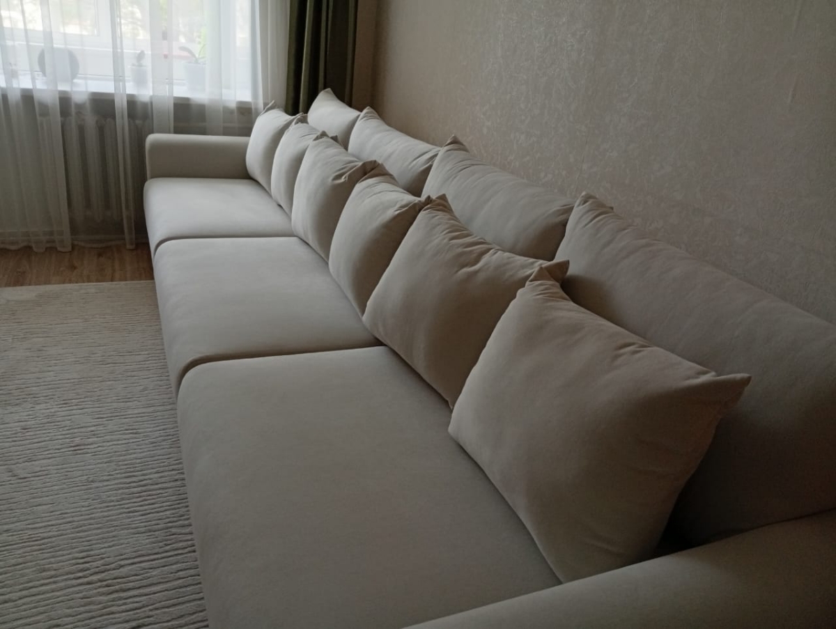 Прямые модели дивана Рафаэль представлены на Озон в размерах 255х110 и 355х110. Если необходимы изменения размеров дивана, то можно обратиться к менеджерам на нашем сайте в чате или по звонку. Мы с радостью рассчитаем стоимость дивана именно в том размере, который Вам необходим.
