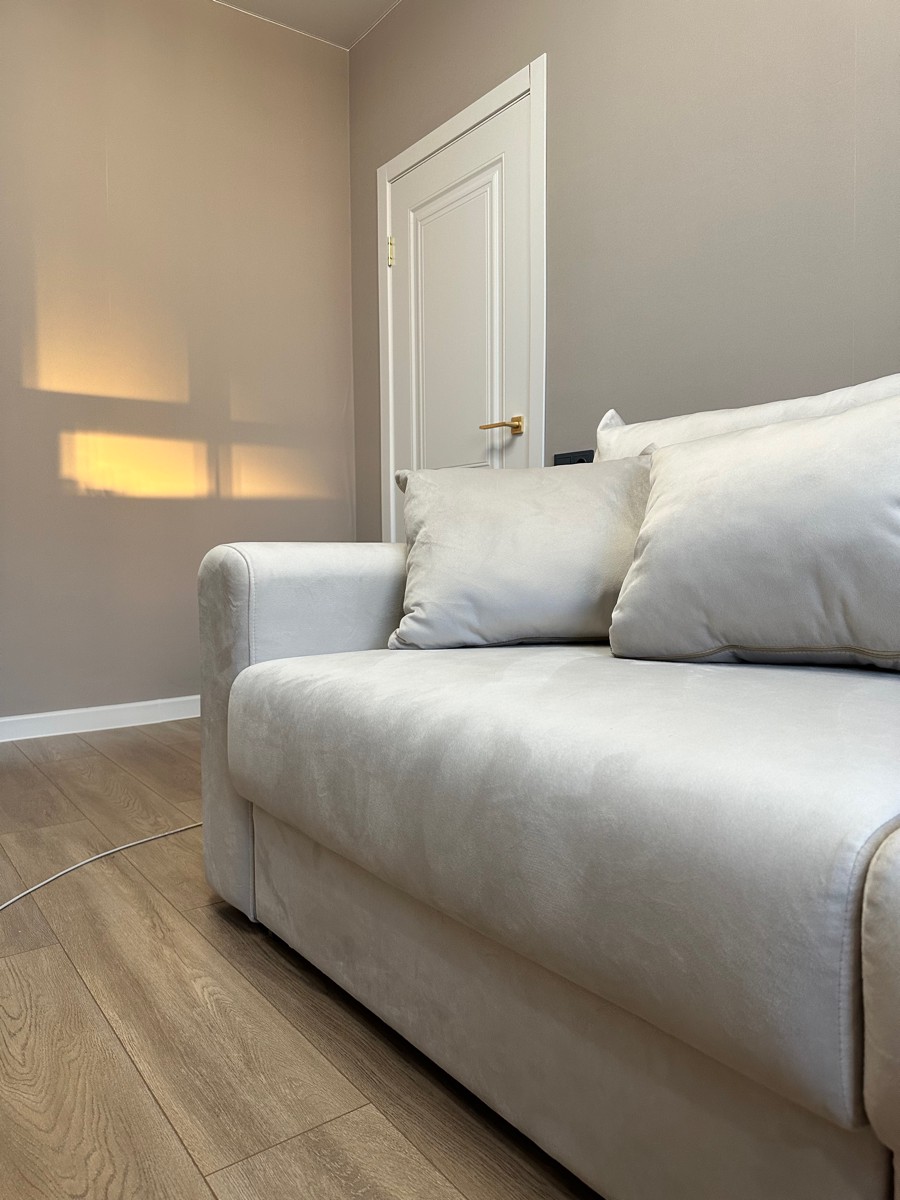 Ткань флок Montego Bone — это антивандальная ткань с приятной бархатистой текстурой и лёгким блеском. Она действительно хорошо себя ведёт в быту: устойчива к когтям, не цепляется, легко чистится.
